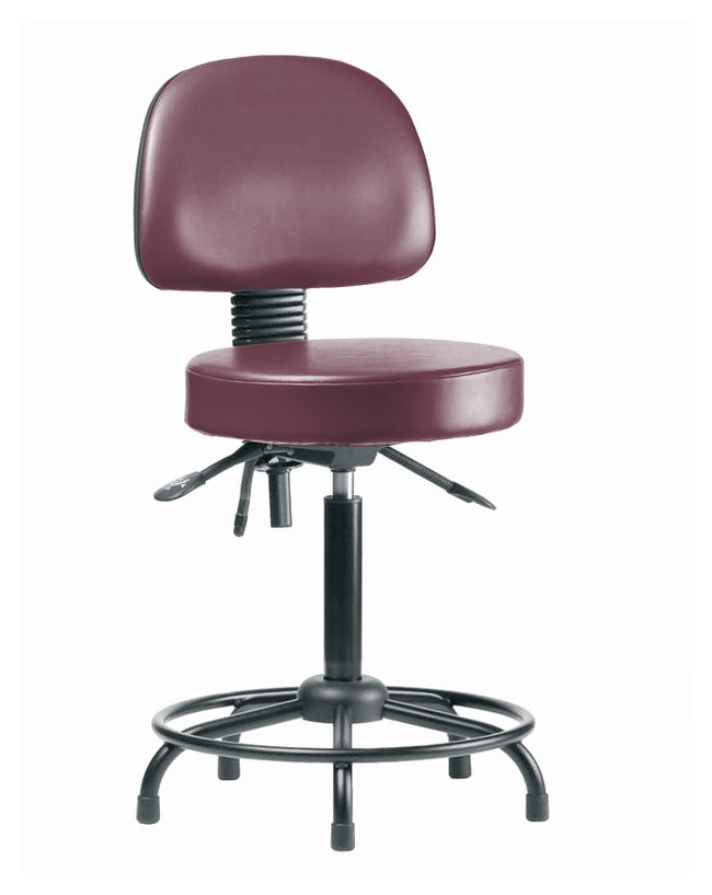 Fisherbrand™ Vinyl Stools with Back and Round Tube Base are height adjustable for 31 in. work surface and feature ergonomic adjustments, fixed foot ring, and stationary glides. Antibacterial/Antimicrobial Grade B vinyl in a variety of colors will suit any work space.
