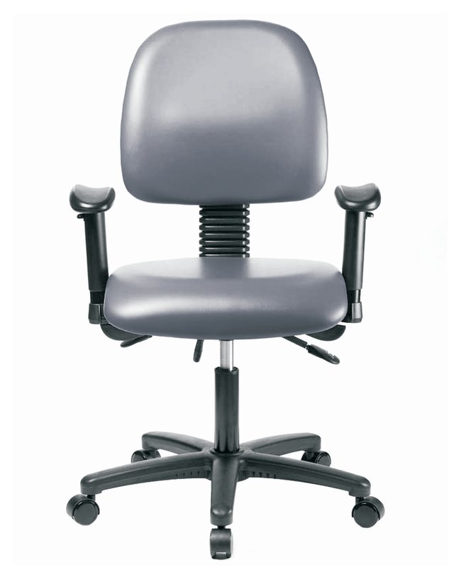 Vinyl Chair - Desk Height with Medium Back, Seat Tilt, Adjustable Arms, and Casters in Grade B Vinyl, Each