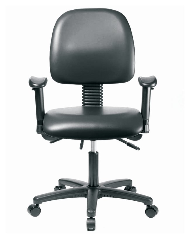 Vinyl Chair - Desk Height with Medium Back, Seat Tilt, Adjustable Arms, and Casters in Grade B Vinyl, Each