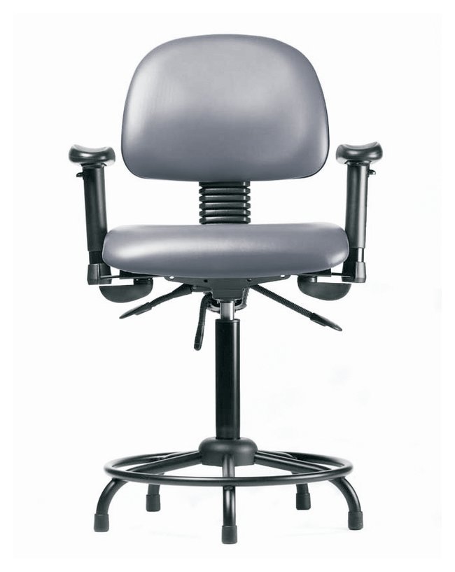 Fisherbrand™ Vinyl Chairs with Round Tube Base are height adjustable for 31 in. work surfaces and feature ergonomic adjustments, adjustable arms, fixed foot ring, and stationary glides. Antibacterial/Antifungal Grade B vinyl in a variety of colors will suit any work space.