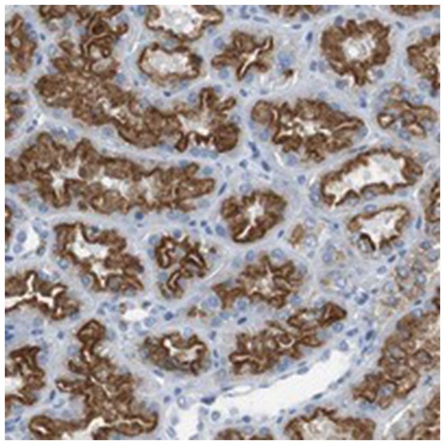 The protein encoded by this gene, low density lipoprotein-related protein 2 (LRP2) or megalin, is a multi-ligand endocytic receptor that is expressed in many different tissues but primarily in absorptive epithilial tissues such as the kidney. This glycoprotein has a large amino-terminal extracellular domain, a single transmembrane domain, and a short carboxy-terminal cytoplasmic tail. The extracellular ligand-binding-domains bind diverse macromolecules including albumin, apolipoproteins B and E, and lipoprotein lipase. The LRP2 protein is critical for the reuptake of numerous ligands, including lipoproteins, sterols, vitamin-binding proteins, and hormones. This protein also has a role in cell-signaling; extracellular ligands include parathyroid horomones and the morphogen sonic hedgehog while cytosolic ligands include MAP kinase scaffold proteins and JNK interacting proteins. Recycling of this membrane receptor is regulated by phosphorylation of its cytoplasmic domain. Mutations in this gene cause Donnai-Barrow syndrome (DBS) and facio-oculoacoustico-renal syndrome (FOAR)Sequence: GFTSMSDRPGKRCAAEGSSPLLLLPDNVRIRKYNLSSERFSEYLQDEEYIQAVDYDWDPEDIGLSVVYYTVRGEGSRFGAIKRAYIPNFESGRNNLVQEVDLKLKYVMQPDGIAVDWVGRHIYWSDVKNKRIEVAKLDGRYRKWLISTDL