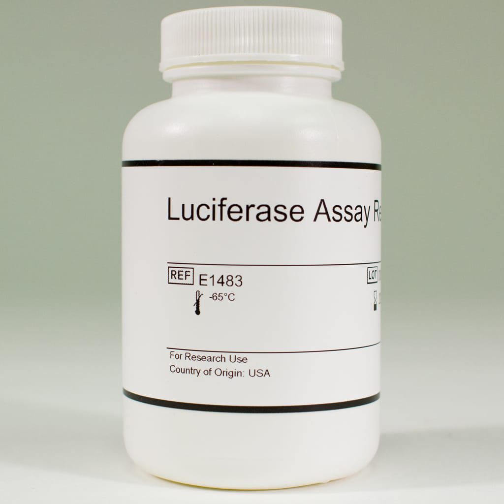 Luciferase Assay Reagent, 1000 assays^ Store E1483 at -70[degree]C. Store other systems at -20[degree]C. The Reporter Lysis Buffer may be stored at room temperature. Firefly luciferase has become a widely used reporter enzyme for studying gene regulation and expression.