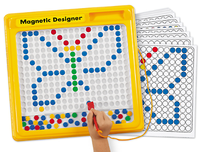 It’s a fascinating way to build patterning skills and eye/hand coordination! Kids use the attached wand to move colorful magnetic disks around the board and presto...they’ve made a design of their own. Self-contained designer has a clear plastic cover to prevent the disks from getting lost, plus a permanently attached wand. Sturdy plastic Magnetic Designer is 12" square.