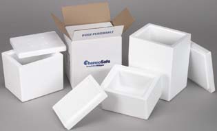 ThermoSafe* Multi-Purpose Shipper^ Lightweight utility shipper for air, water, food samples. Constructed with 3.8cm thick polystyrene foam insulation to protect temperature-sensitive samples. Inner dimensions: 20Lx15Wx11Hcm. Weight: 256g.