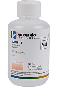 1000 ppm (µg/mL) Maleate for IC is a 125mL certified reference material set in a water matrix for stability. This maleate standard is Traceable to NIST and manufactured in accordance with our stringent Quality Assurance guidelines. One year Expiration Date.
