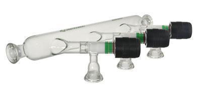 MANIFOLD, VACUUM, AIRFREE^ Number of Ports: 4; Overall Width: 390mm. Single bank manifold with 0-8mm Chem-Cap valves mounted on a 45[degree] angle to the user permitting easy operation inside of a fume hood. Ports are spaced 75mm center to center. All connection ports are 15mm I.D.