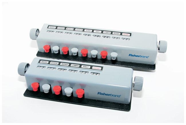 Designed for blood cell countingHelps in automatic calculation including percentagesTotaling unit rings a bell at 100 incrementsDual reset knobsLast unit is the totaling unit, which records total number of strokes made on other keysRemovable tabs on top of counter provide area for identification of classification being countedAcid resistant, non slip bottom