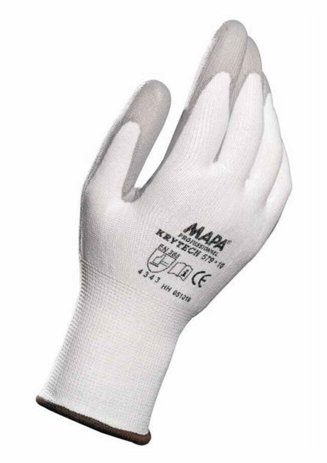 Ergonomic shape for the reduction of hand fatigueAbrasion resistance for long-term wearReduced thickness for tactile sensitivityAnatomical shape for dexterityHigh density polyurethane fiber interiorVentilated backWhiteApplications:Automotive/mechanical industry; Paper industry