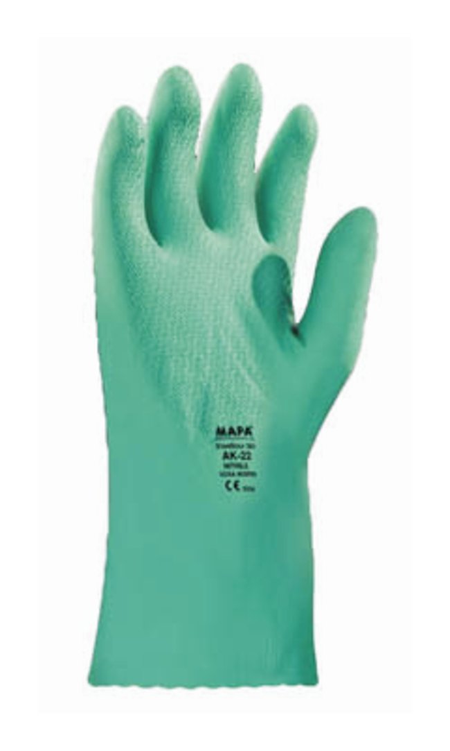 StanSolv AK-22 381 Chemical Resistant Nitrile Gloves, Green, nitrile gloves feature a cotton-knit lining for added comfort and thermal insulation, Dozen of 12