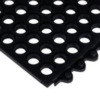 #570 24/Seven* Solid, 5/8 inch x 3 x 3 Grease Resistant Black^ Anti-fatigue mat. For dry environments. Modular, molded rubber anti-fatigue mats have a hidden interlocking system designed to connect on all four sides to quickly cover large areas. For extra safety, attach optional 3 wide beveled edges.