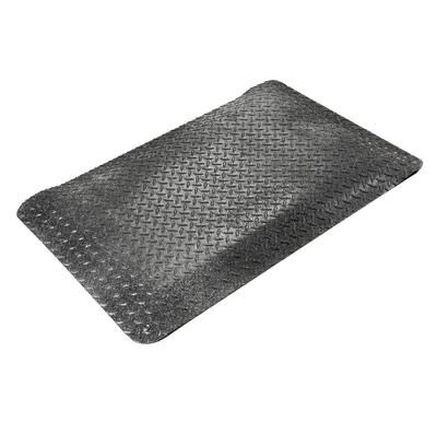 #416 Diamond-Plate with GritWorks*, 9/16 inch x 2 x 3 Black^ Anti-fatigue mat. Standard thickness provides comfort and slip protection. For primarily dry areas with overspray or grease and oil tracked onto the mat. Carbide grit increases traction by 50%. Chemical resistance and durable.