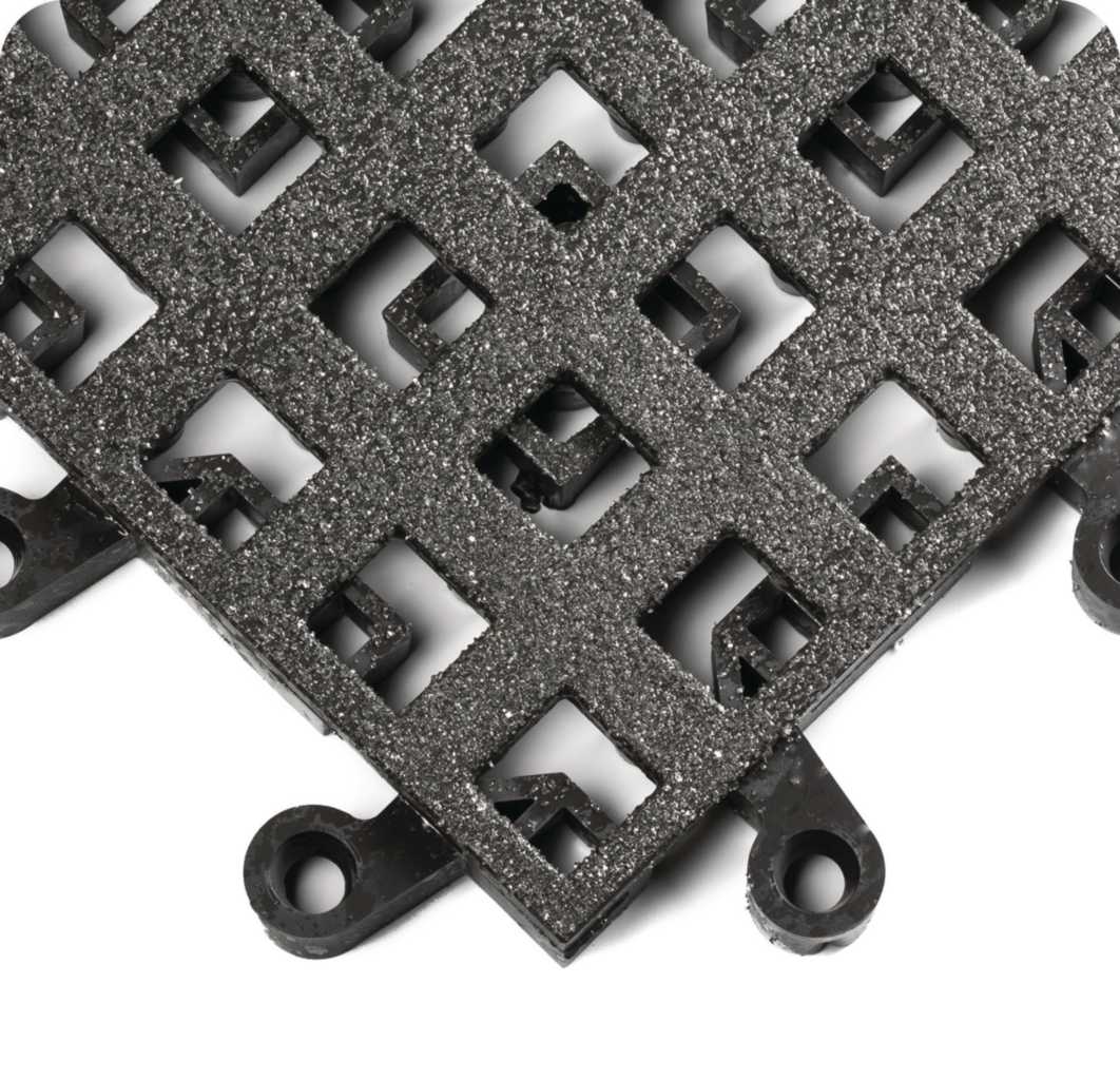 #561 ErgoDeck Open Grid with GritWorks, 7/8 inch x 18 inch x 18 inch, Case of 10 Tiles, Black Anti-fatigue mat. Use in wet, slippery areas where extra traction is essential. Large openings for better flow-through. GritWorks surface provides 40% more traction than the minimum OSHA recommendation.