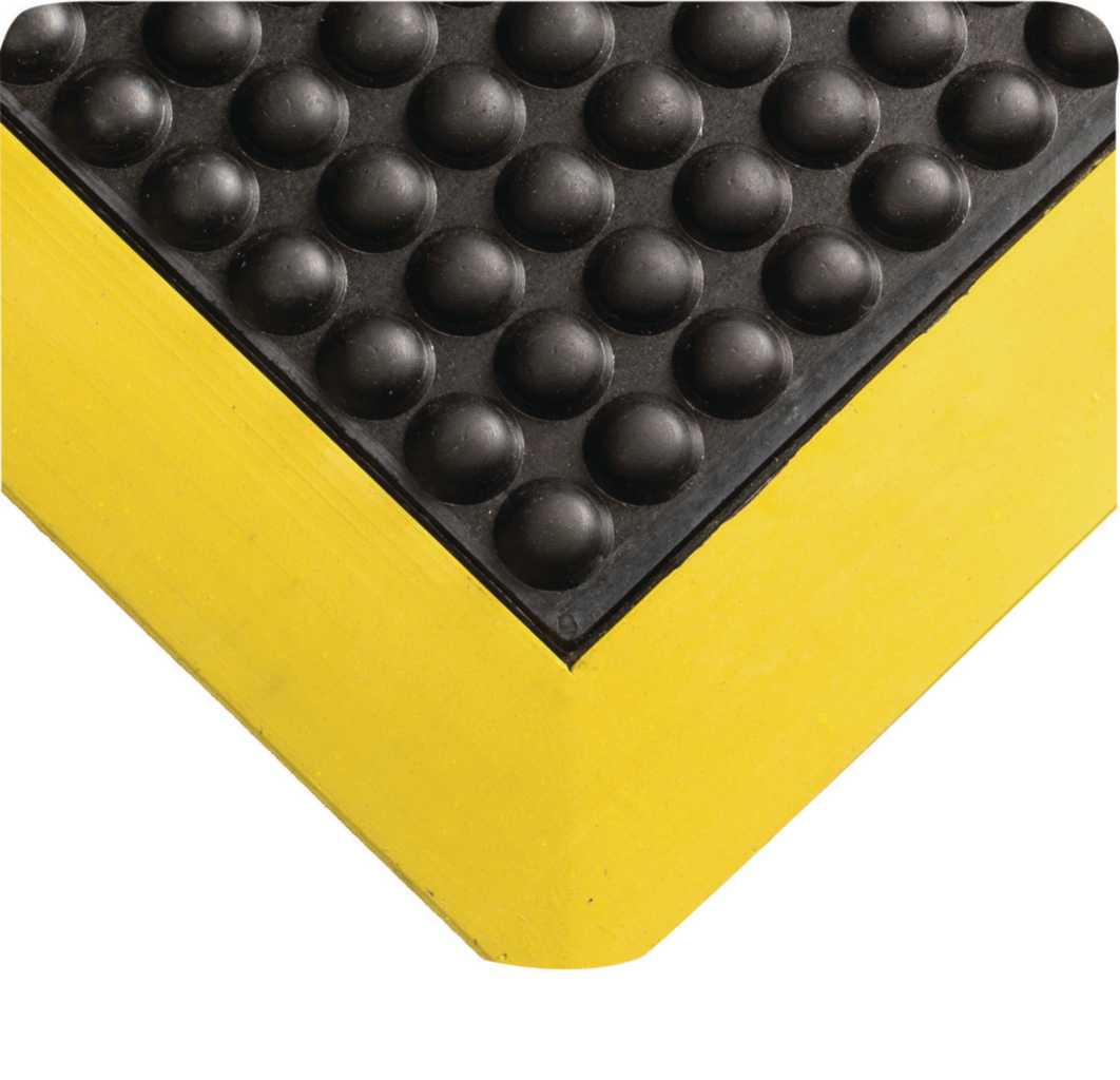 #454 Ortho Stand* 1/2 inch x 3 x 4 Black/Yellow^ Anti-fatigue mat. Hollow-domed surface allows frequent changes in posture to boost circulation, resulting in greater comfort and less fatigue. Perfect as a single work-area mat, use Ortho Stand* at check-out stands, manifest systems, mailing areas, etc.