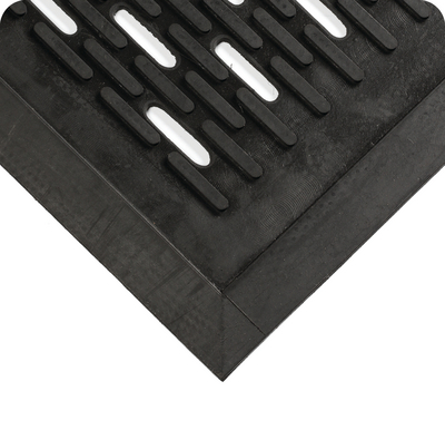 #224 UpFront Scraper Mat 5/16 inch x 3 x 5 Grease Resistant Slotted Black^ Anti-fatigue mat. Classic design scrapes debris, snow and rain off shoes, containing it outside. Pliable and durable rubber compound is highly resistant to harsh outside elements. Simply hose it down or shake it off and its ready to go.