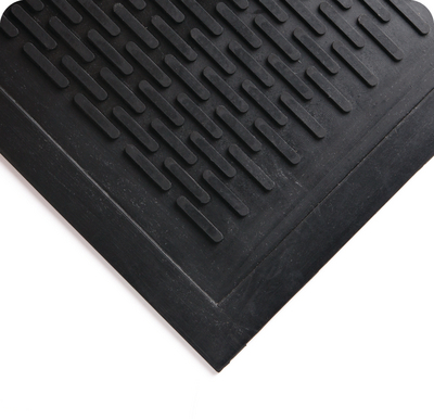 #224 UpFront Scraper Mat 5/16 inch x 3 x 5 Grease Resistant Black^ Anti-fatigue mat. Classic design scrapes debris, snow and rain off shoes, containing it outside. Pliable and durable rubber compound is highly resistant to harsh outside elements. Simply hose it down or shake it off and its ready to go.