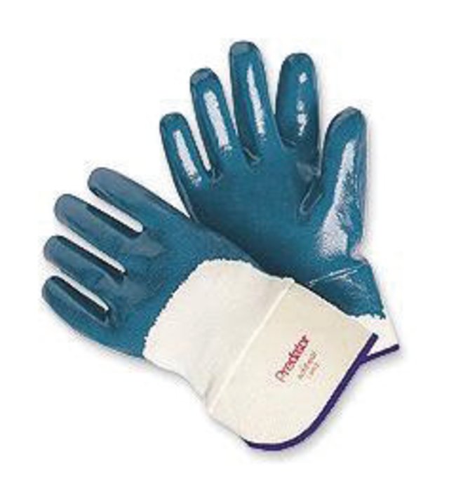 Nitrile-coated gloves feature a cotton jersey lining for comfort, and a safety cuff for increased protection. Acti-Fresh™ treatment helps prevent odors while also eliminating bacteria.