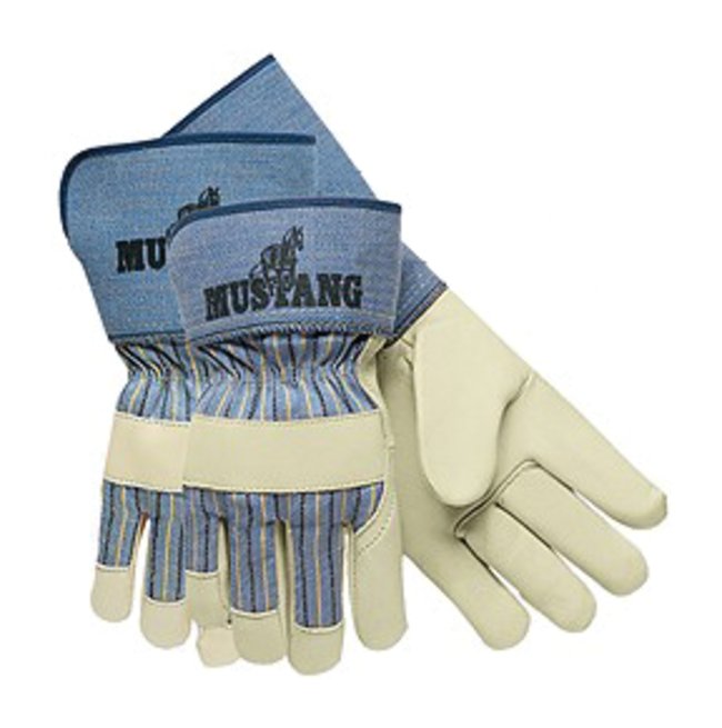 Mustang Premium Grain Leather Palm Work Gloves - Safety Cuff, Dozen of 12