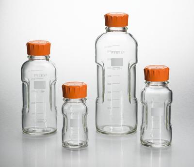 Glass media storage bottle, With side grips, 125mL^