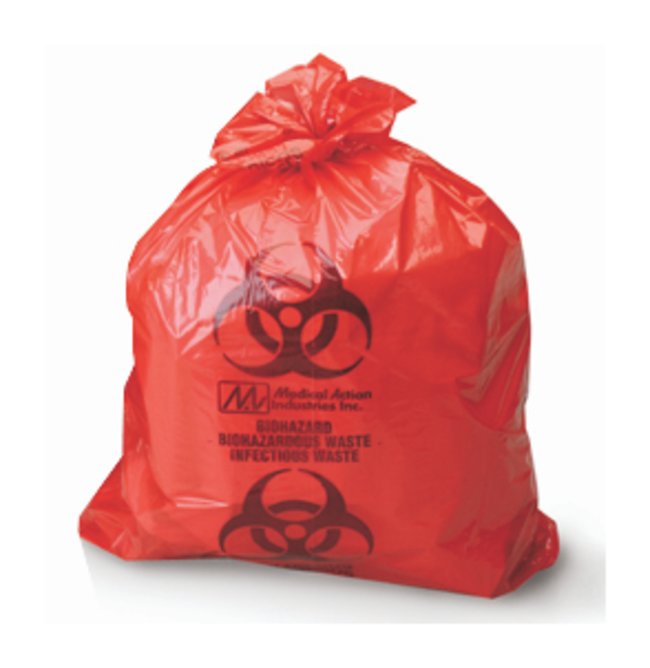 Made from low-density polyethyleneMinimize the risk of contamination from biohazardous materials during collection and transportBags are red with “Biohazardous Waste/Infectious Waste” and biohazard symbol imprinted in black inkIndividually folded