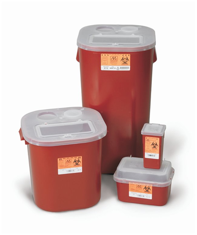 Needle removal port for easy disposalLocking lids for transportMade of autoclavable polypropylene to meet industry standards for puncture resistance