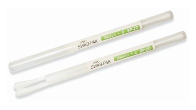Swabs are contained in a sterile, plastic transport tube with a tamper-evident labelSingle swabs have a straight wire shaft on a plastic handleDual swabs have a plastic shaft