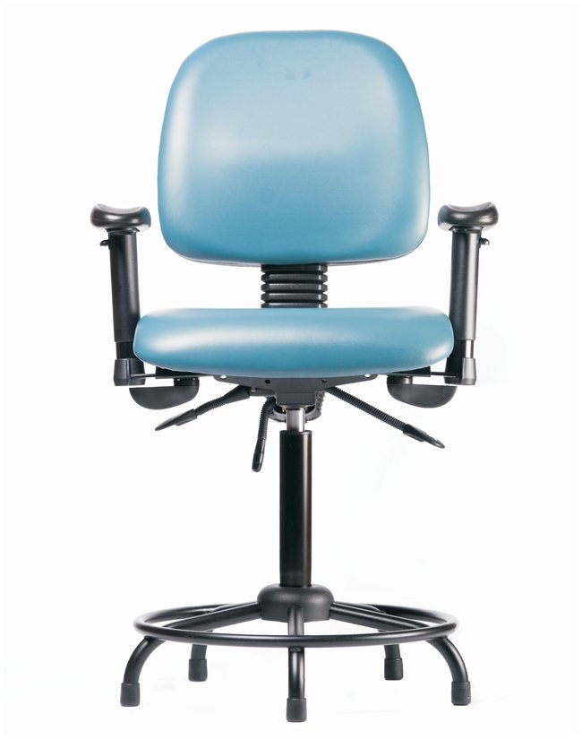 Fisherbrand™ Vinyl Chairs with Medium Back & Round Tube Base are height adjustable for 31 in. work surfaces & feature ergonomic adjustments, larger back, adjustable arms, fixed foot ring, & stationary glides. Antibacterial/Antifungal Grade B vinyl in a variety of colors will suit any work space.