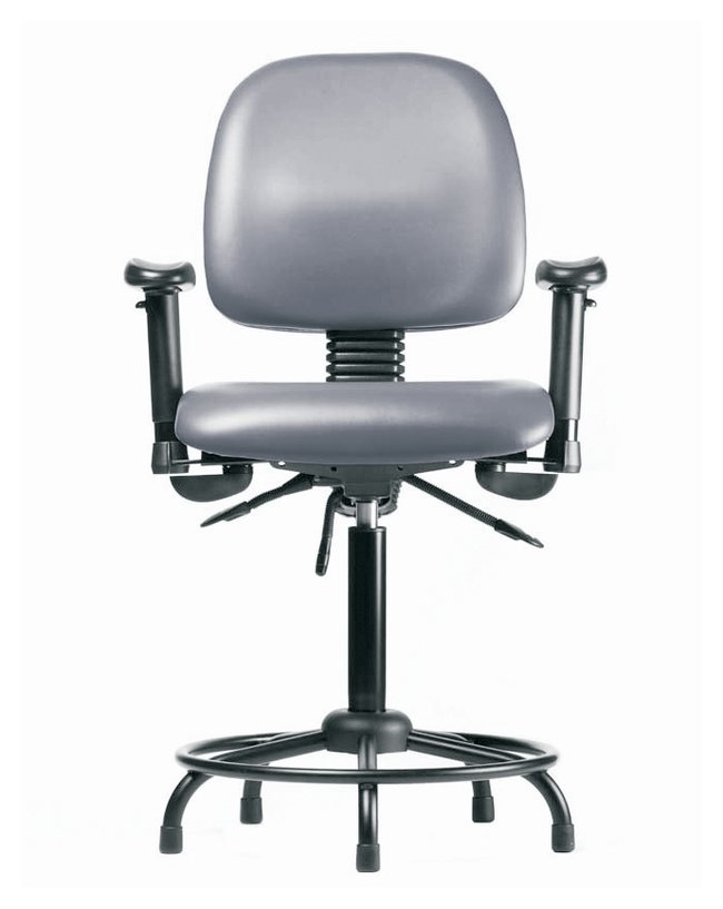 Fisherbrand™ Vinyl Chairs with Medium Back and Round Tube Base are height adjustable for 31 in. work surfaces and feature ergonomic adjustments, larger back, adjustable arms, fixed foot ring, and stationary glides. Antibacterial/Antifungal Grade B vinyl in a variety of colors will suit any work space.