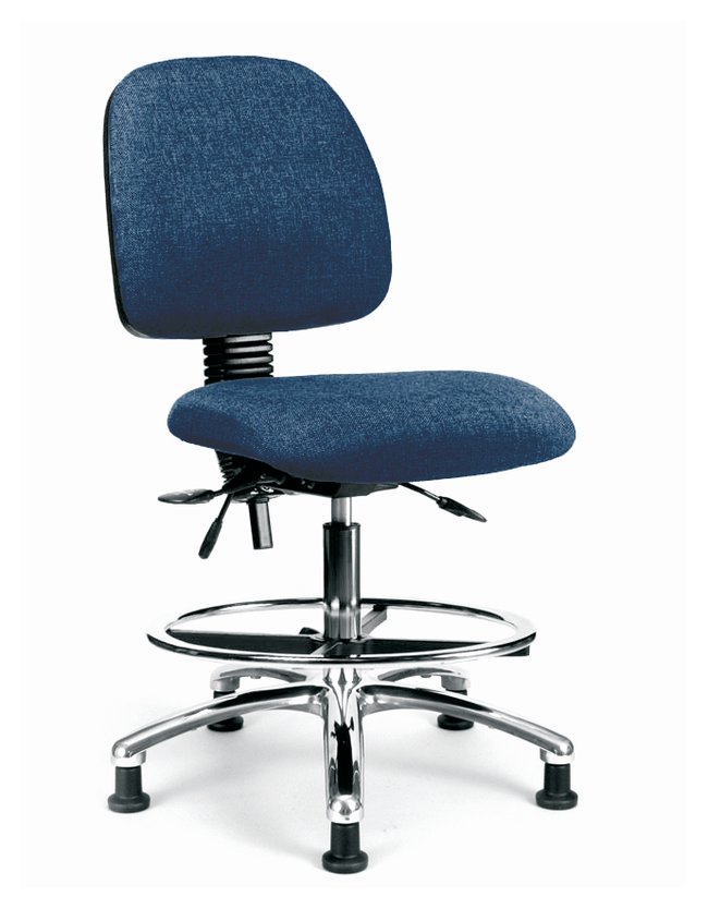 Fabric Chair Chrome - High Bench Height with Medium Back, Seat Tilt, Chrome Foot Ring, and Stationary Glides in Fabric, Each
