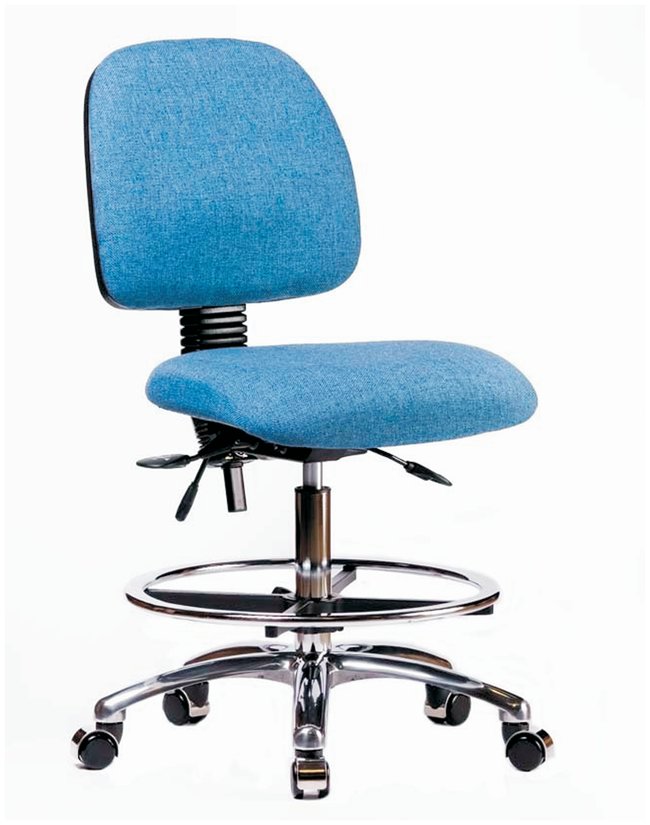Fabric Chair Chrome - High Bench Height with Medium Back, Seat Tilt, Chrome Foot Ring, and Stationary Glides in Fabric, Each