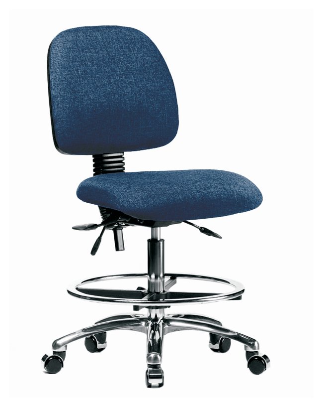 Fabric Chair Chrome - High Bench Height with Medium Back, Seat Tilt, Chrome Foot Ring, and Casters in Fabric, Each