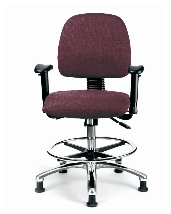 Fabric Chair Chrome - High Bench Height with Medium Back, Seat Tilt, Adj Arms, Chrome Foot Ring, and Stationary Glides in Fabric, Each