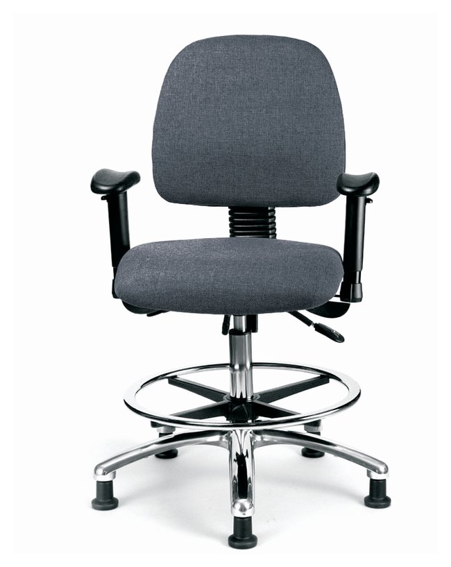 Fabric Chair Chrome - High Bench Height with Medium Back, Seat Tilt, Adj Arms, Chrome Foot Ring, and Stationary Glides in Fabric, Each