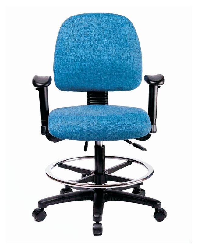 Fabric Chair Chrome - High Bench Height with Medium Back, Seat Tilt, Adjustable Arms, Chrome Foot Ring, and Casters in Fabric, Each