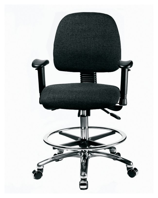 Fabric Chair Chrome - High Bench Height with Medium Back, Seat Tilt, Adjustable Arms, Chrome Foot Ring, and Casters in Fabric, Each