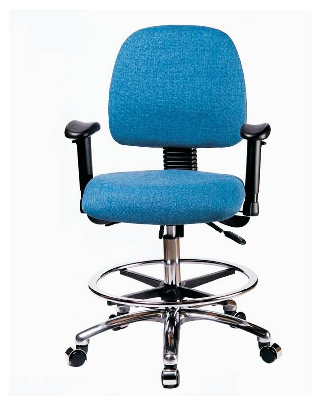 Fabric Chair Chrome - High Bench Height with Medium Back, Seat Tilt, Adjustable Arms, Chrome Foot Ring, and Casters in Fabric, Each
