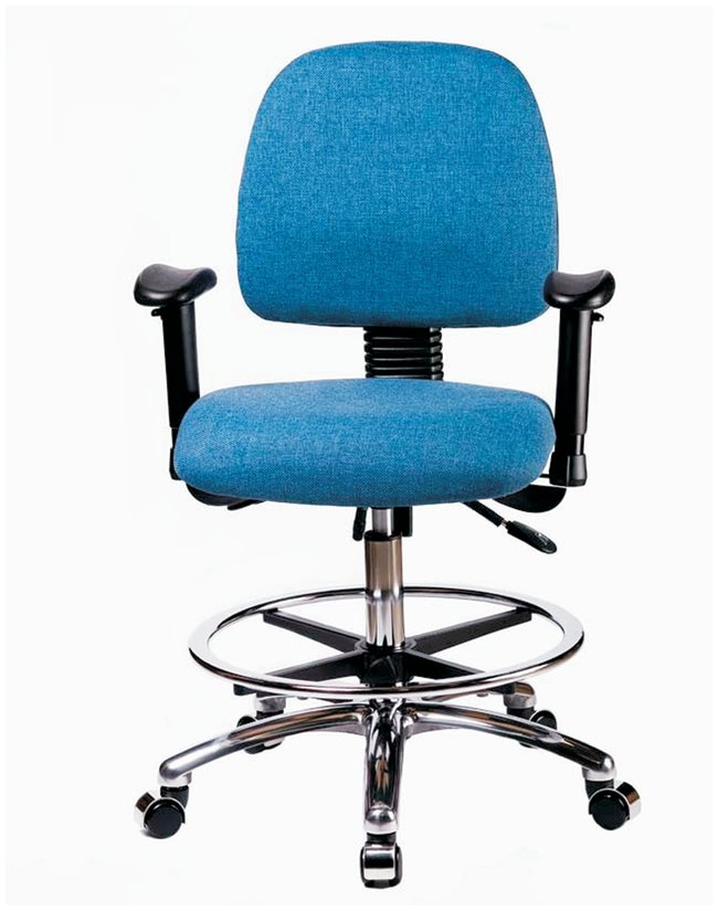 Fabric Chair Chrome - High Bench Height with Medium Back, Seat Tilt, Adjustable Arms, Chrome Foot Ring, and Casters in Fabric, Each