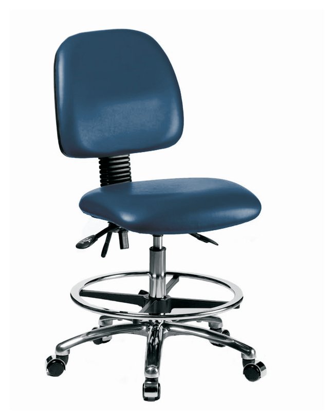 Fisherbrand™ Vinyl Chairs with Medium Back in Chrome are height adjustable for 36 in. work surfaces and feature ergonomic adjustments, larger back, chrome adjustable foot ring, and self-braking casters. Antibacterial/Antifungal Grade B vinyl in a variety of colors will suit any work space.