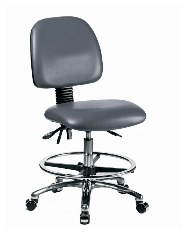 Fisherbrand™ Vinyl Chairs with Medium Back in Chrome are height adjustable for 36 in. work surfaces and feature ergonomic adjustments, larger back, chrome adjustable foot ring, and self-braking casters. Antibacterial/Antifungal Grade B vinyl in a variety of colors will suit any work space.
