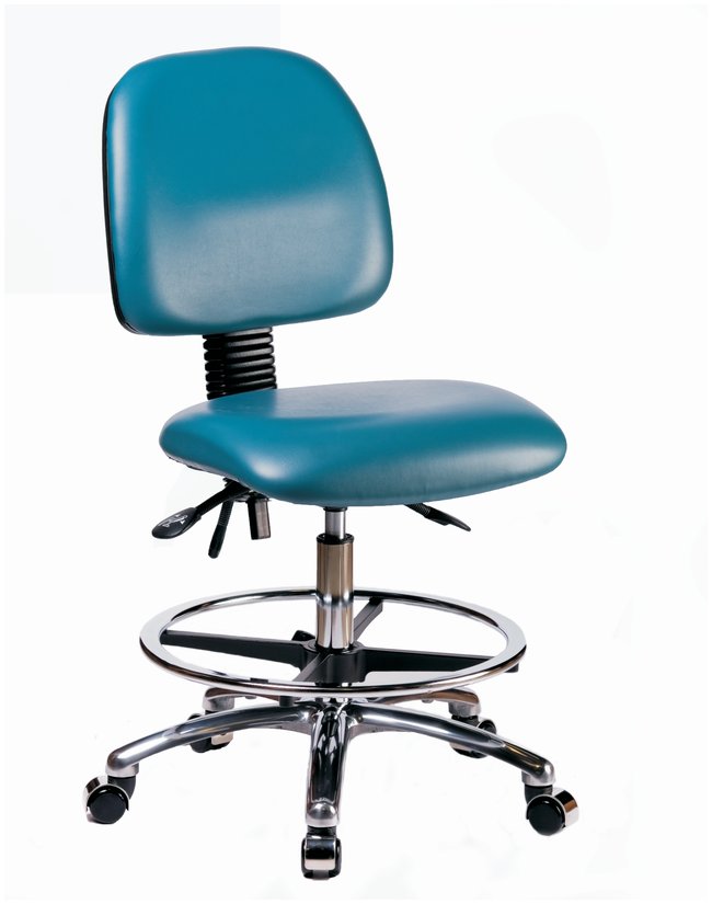 Fisherbrand™ Vinyl Chairs with Medium Back in Chrome are height adjustable for 36 in. work surfaces and feature ergonomic adjustments, larger back, chrome adjustable foot ring, and self-braking casters. Antibacterial/Antifungal Grade B vinyl in a variety of colors will suit any work space.