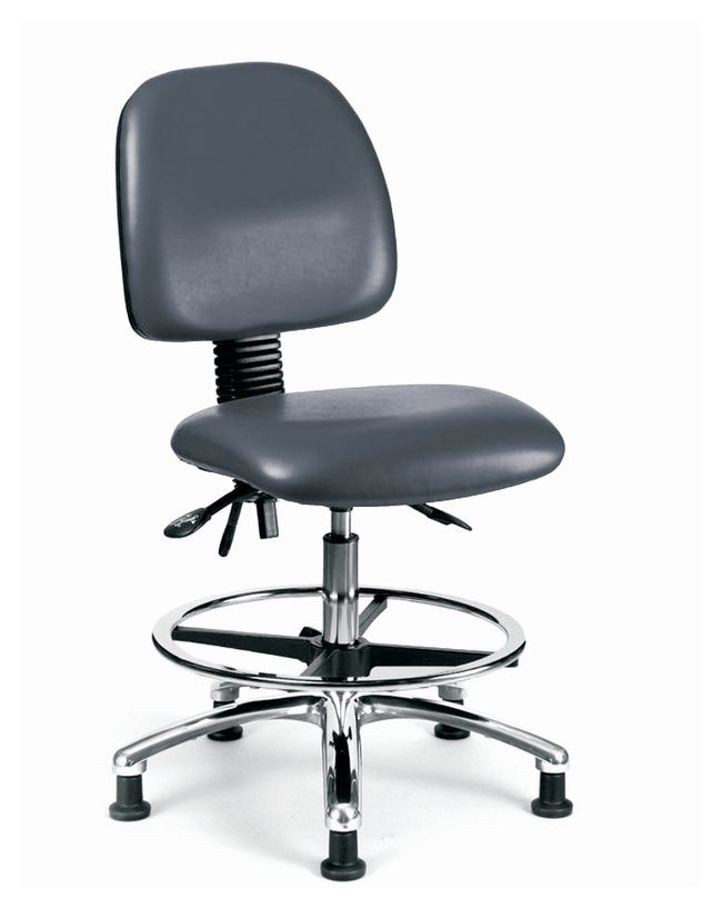Fisherbrand™ Vinyl Chairs with Medium Back in Chrome are height adjustable for 36 in. work surfaces and feature ergonomic adjustments, larger back, chrome adjustable foot ring, and stationary glides. Antibacterial/Antifungal Grade B vinyl in a variety of colors will suit any work space.