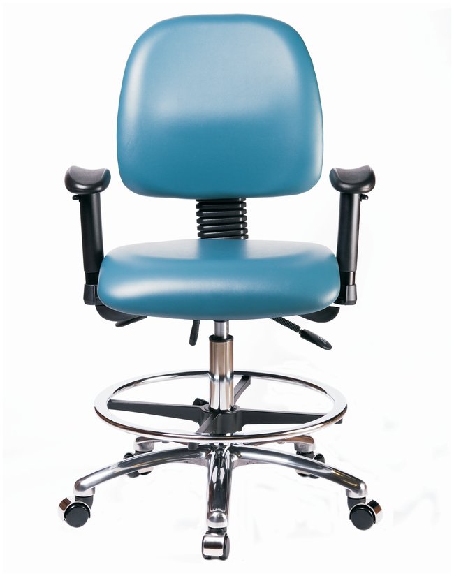Fisherbrand™ Vinyl Chairs with Medium Back in Chrome are height adjustable for 36 in. work surfaces & feature ergonomic adjustments, larger back, adjustable arms, chrome adjustable foot ring, & self-braking casters. Antibacterial/Antifungal Grade B vinyl in a variety of colors will suit any work space.