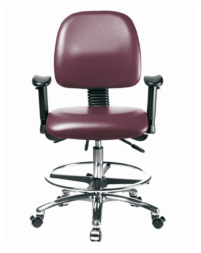 Fisherbrand™ Vinyl Chairs with Medium Back in Chrome are height adjustable for 36 in. work surfaces and feature ergonomic adjustments, larger back, arms, chrome adjustable foot ring, and self-braking casters. Antibacterial/Antifungal Grade B vinyl in a variety of colors will suit any work space.