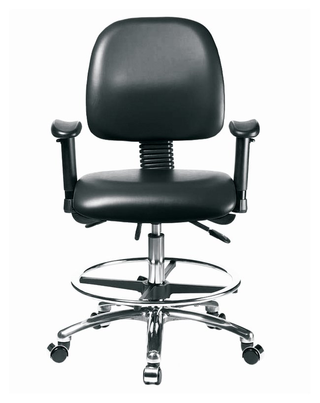 Fisherbrand™ Vinyl Chairs with Medium Back in Chrome are height adjustable for 36 in. work surfaces and feature ergonomic adjustments, larger back, arms, chrome adjustable foot ring, and self-braking casters. Antibacterial/Antifungal Grade B vinyl in a variety of colors will suit any work space.