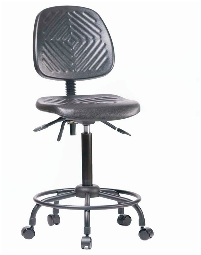 Fisherbrand™ Polyurethane Chairs with Medium Back & Round Tube Base is height adjustable for 36 in. work surfaces and features ergonomic adjustments, larger back, fixed foot ring, & self-braking casters. Self-skinning polyurethane is chemical, soil, & puncture resistant and is easily cleaned.