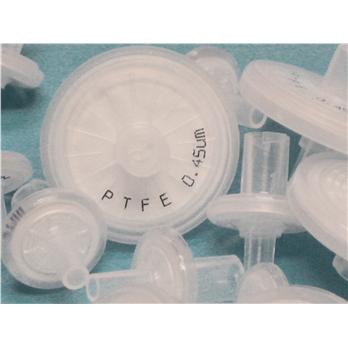Disposable Syringe Filters featuring:Polypropylene housingLeur-Lok and pressure fittingConvenient color coding systemBroad filter material selectionUltrasonically bonded for reliabilityPolytetrafluoroethylene (PTFE) PTFE membranes are hydrophobic; thus they are ideal for the filtration of nonpolar liquids and gases. They arevery resistant towards all kinds of solvents as well aswith acids or bases. By flushing with alcohol, followed by water, the originally hydrophobic membrane can bemade more hydrophilic.