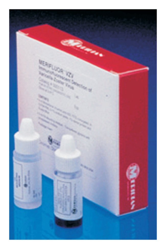 MERIFLUOR VZV Direct Fluorescent Test Kit, Direct fluorescent antibody detection of Varicella-Zoster virus in vesicle smears, biopsies, VZV cell culture, Each