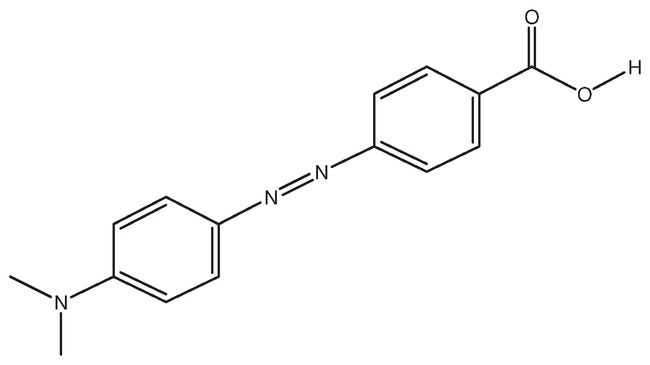Methyl Red, C15H15N3O2, CAS Number-493-52-7, Acid Red 2, 2-[4-(Dimethylamino)phenylazo]benzoic acid, C.I. 13020, 25g, 269.3, Pure, Warning, GHS H Statement: Harmful if swallowed.
