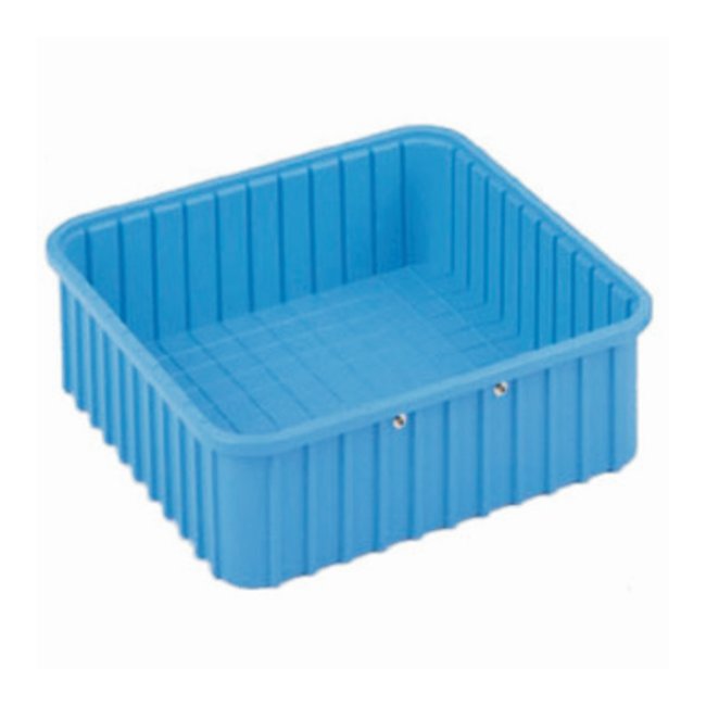 Can be stored and transported on a variety of standard Metro products Manufactured from Benstat™ blue static dissipate (BAS), a polypropylene based resin Injection molded for longer life and more uniform wall thickness Inside Dimensions (L x W x Stack Depth): 23.3 x 16.7 x 17.6cm (9.187 x 6.562 x 3 in.) Outside Dimensions (L x W x H): 27.6 x 21 x 8.9cm (10.875 x 8.25 x 3.5 in) Cu. Cap (cu. ft.): 0.10 Weight: 16.8 kg (37 lb.) Carton Quantity: 48 Approx. Carton Weight: 37 lb. (Items must be purchased in carton quantities to avoid a broken lot charge)See also: Tote Dividers (17-820-354, -360.)
