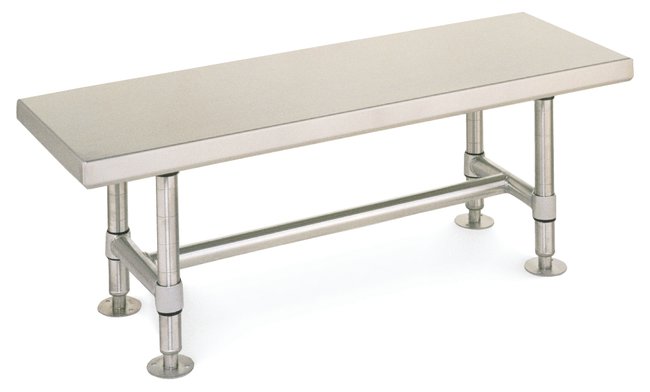 18 in. high (45.7cm) bench with heavy-duty, solid top made of 14 gauge, Type 304 stainless-steelAdjustable stainless-steel foot plates provide for floor mountingNonconductive but can be made conductive with the addition of aluminum split sleeves (Cat. No. 17-987-44)This product(s) resides on a Fisher Scientific GSA or VA contract. If you are viewing this page as a nonregistered user, the price(s) displayed is List Price. To view your GSA or VA contract pricing, log in using your account number, or become a registered user by contacting one of our Customer Service teams. You can also view your contract price by searching for this item(s) on GSA Advantage. To place an order, contact Fisher Scientific Customer Service.