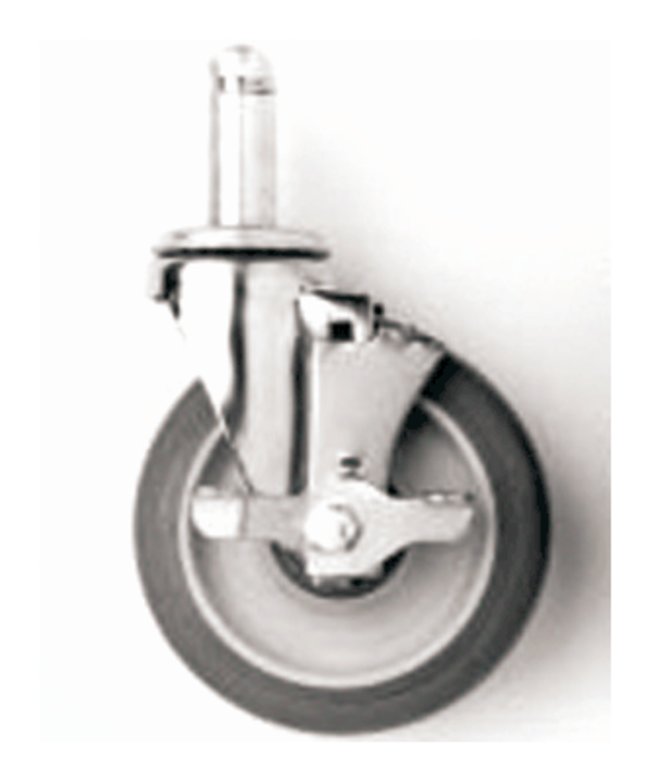 Promotes easy cleaningCasters allow shelving units to be moved easily for access to floors and wallsWhen used to create carts, allows efficient movement of supplies throughout a facility or campusPolymer Stem CastersCorrosion-resistant performance (all-polymer horn, stainless-steel axle and hardware)5 in. (127mm) diameter polyurethane wheelSleeve-stye axle bearingOptional toe-operated brake mechanismAntimicrobial product protection built into treadLoad rating of 300 lbs. (135kg)Temperature range: -20 to 120°F (-29 to 49°C) [continuous]Bumpers includedStandard Stem CastersPlated caster horns and hardwareStem/Swivel or Stem/Brake styleBumpers includedStainless-steel, Cart-Washable Stem CasterStainless horn, axle, and stemSealed bearings (bumper included)
